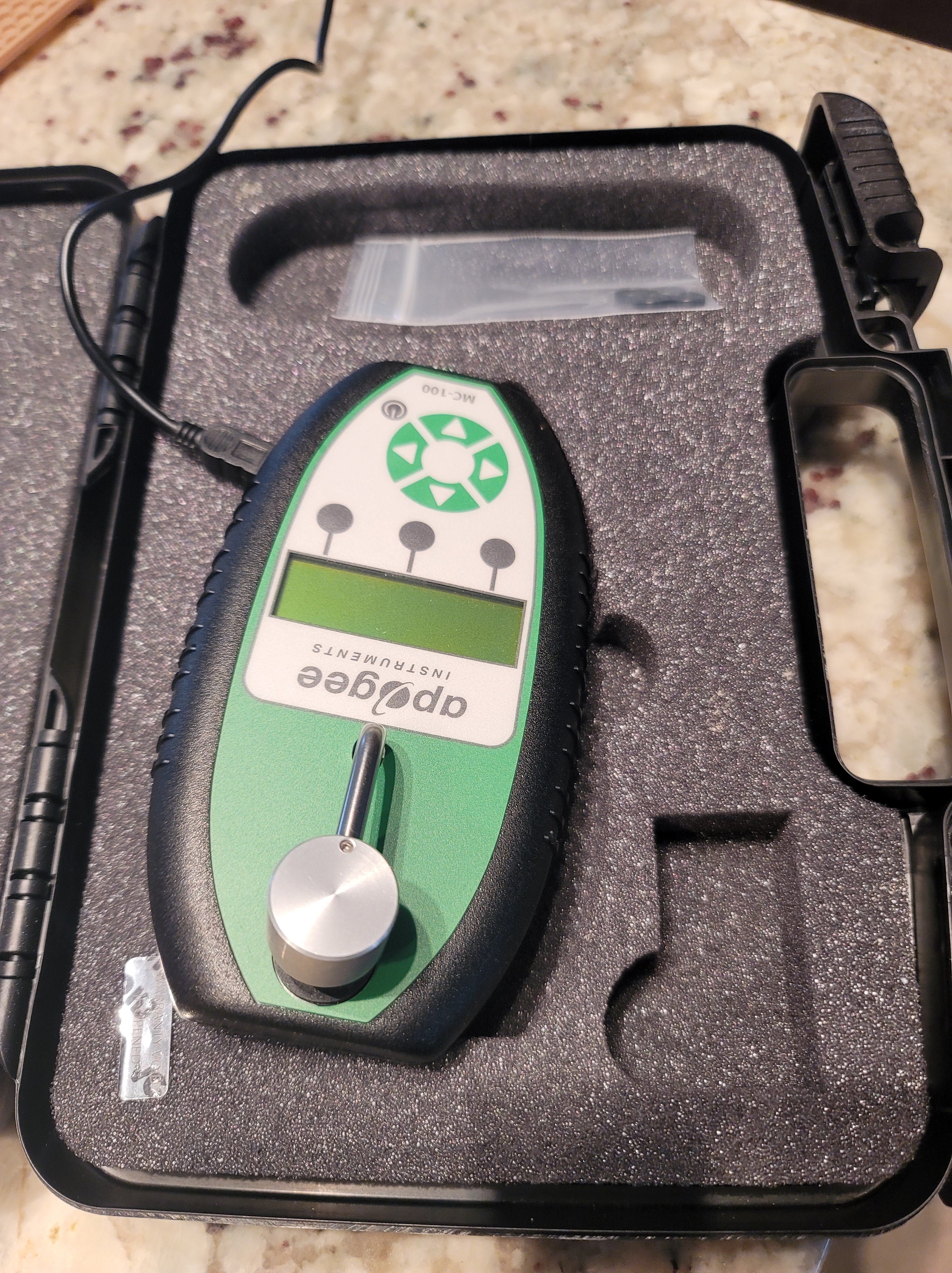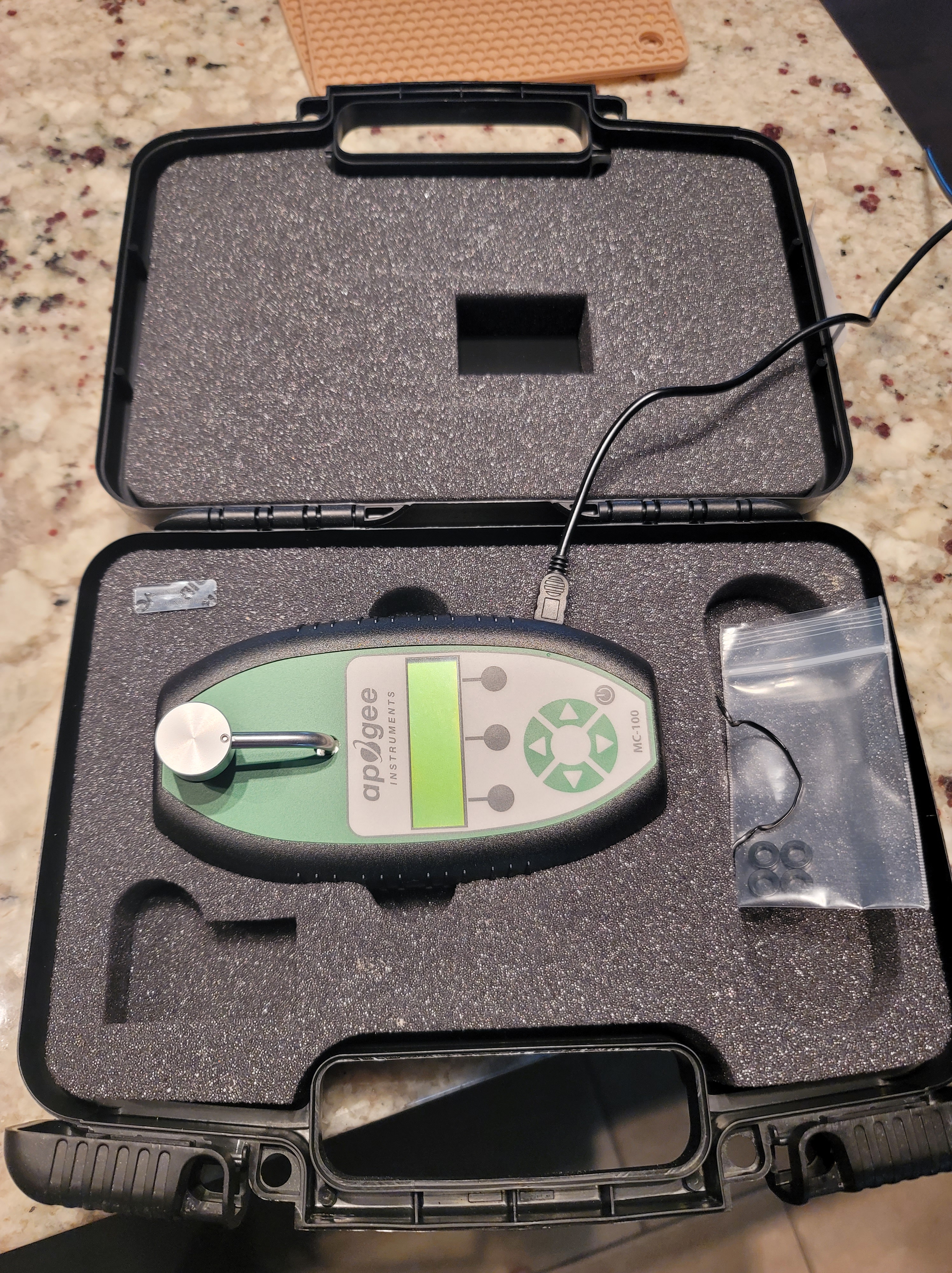 The Apogee MC-100 chlorophyll meter directly measures and displays chlorophyll concentration from intact leaf samples without damaging the plant material. The meter is calibrated to measure chlorophyll concentration with units of µmol of chlorophyll per m2. For reference and comparison purposes the meter also outputs relative units (CCI or SPAD). Typical application include chlorophyll concentration determination in leaves for assessment of nutrient status, fertilizer requirements, evaluation of stress, and optimization of harvest.
